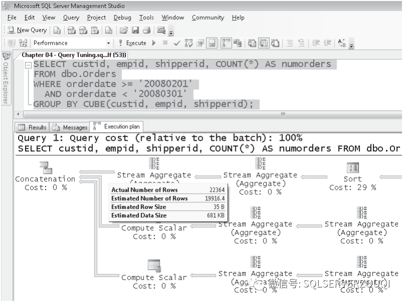 SELECT custid, empid, shipperid, COUNT(*) AS numorders FROM dbo.Orders WHERE orderdate >= '20080201' AND orderdate < '20080301'GROUP BY CUBE(custid, empid, shipperid);