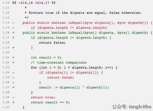 MessageDigest.isEqual中的bug的修复,如下图所示: