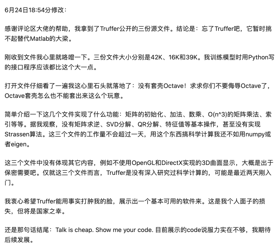 如果真的深究「套壳Octave」这个问题,建议感兴趣的研究者可以问TRUFFER官方要一份源码再品读一下。