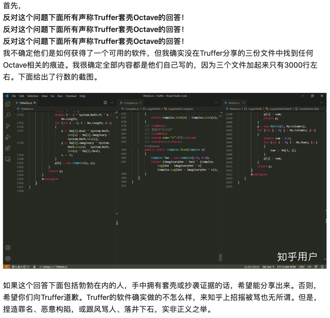 知乎网友@立党指出,TRUFFER是个套壳Octave的「假」自主研发的软件。