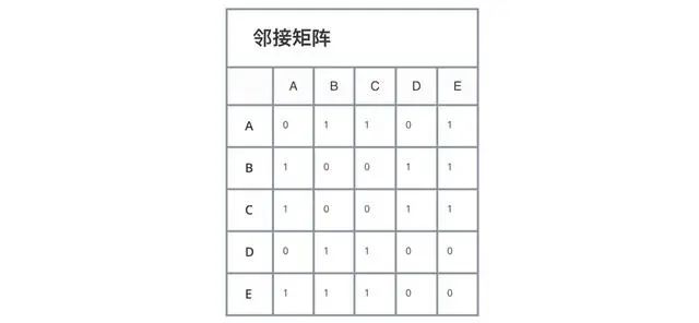 好了,无向图画好了,现在我们将它映射到邻接矩阵上面(这一步强烈建议小伙伴们拿出纸笔来一起画一画):