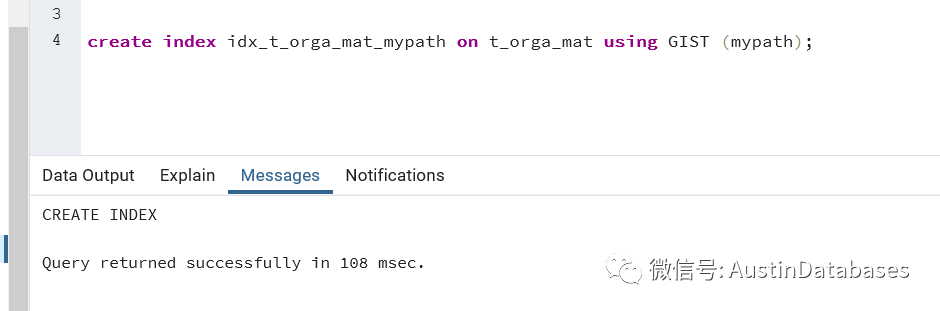 同样也可以对雾化视图里面的ltree 字段进行索引,提高数据查询的效率