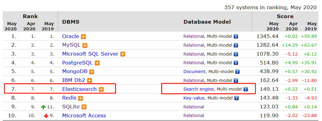图示:Elasticsearch综合数据库排名热度已经到第7