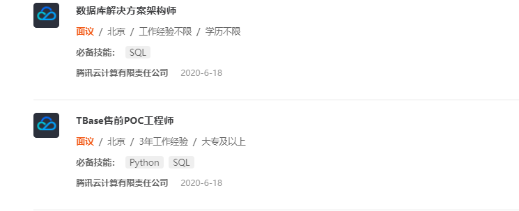 你将查看到官方定期发布的TBase数据库优质岗位。职场新机遇,也许就在不经意间撞到的某条招聘。