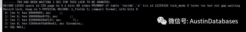 实际上,上面的图是一个很经典的MYSQL的 record locks 的问题, 问题的起因应该是 testdb.a 这张表的某条记录,例如