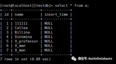 1 请创建一个简单的表,具体有多简单,1 要有主键, 2 要有一个非主键的字段,例如varchar(30), 然后输入一些信息,类似下面这样。
