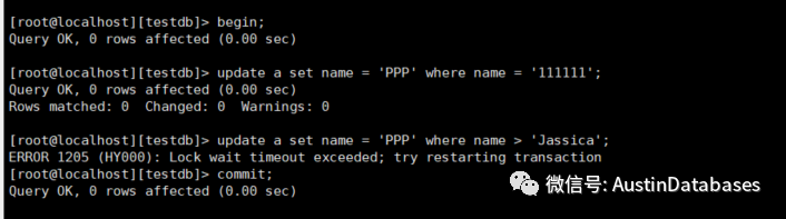 2 session 1 update a set name = 'aaa' where name > 'PPP';