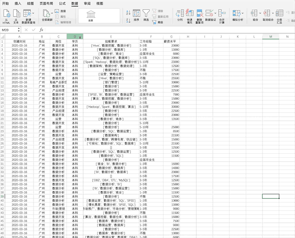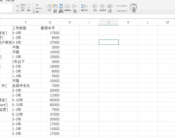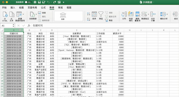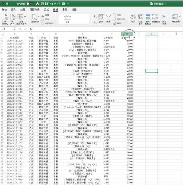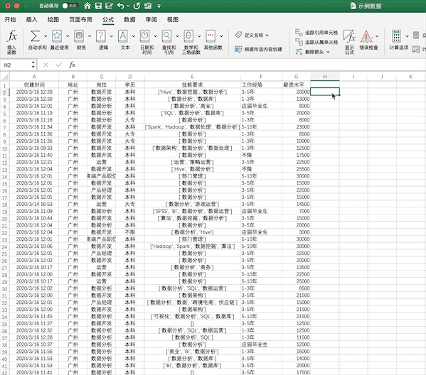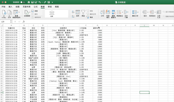 在Excel中抽样可以使用公式也可以使用分析工具库中的抽样,但是仅支持对数值型的列抽样,比如随机抽20个示例数据中薪资的样本
