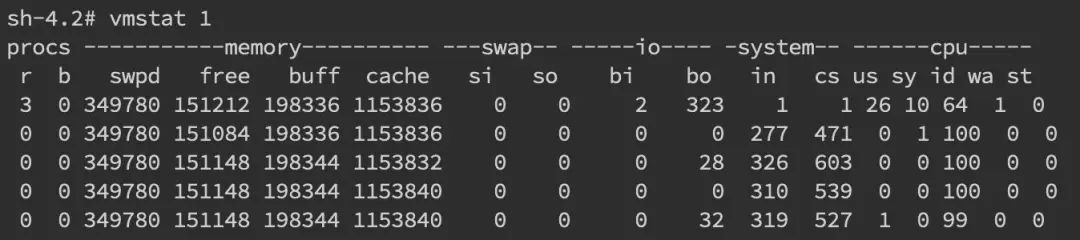 针对频繁上下文问题,我们可以使用vmstat命令来进行查看