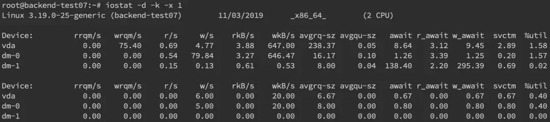 更多时候,磁盘问题还是性能上的问题。我们可以通过 iostatiostat -d -k -x来进行分析