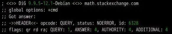上面命令只返回math.stackexchange.com对应的4个IP地址(即A记录)。