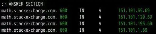 $ dig +short math.stackexchange.com151.101.129.69151.101.65.69151.101.193.69151.101.1.69
