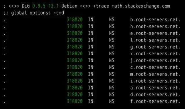 比如,域名math.stackexchange.com显示为math.stackexchange.com.。这不是疏忽,而是所有域名的尾部,实际上都有一个根域名。