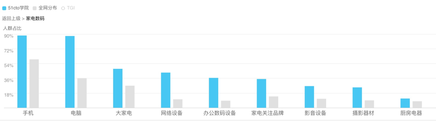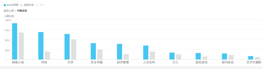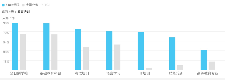 以下蓝条为51CTO学院数据;灰条为全网数据(样本数据预估150万)