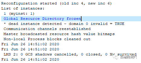 从这上面看,节点1发现了另外一个节点死掉了,于是做了reconfiguration。如果是这样,我们就需要把更多的精力放到查找节点1死掉的原因上了。在对messages文件进行仔细分析后终于发现了一点有用的信息