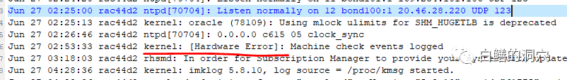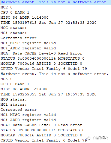 既然是硬件错误,那么就很可能和服务器重启有关了,因为记录了check events log,所以我们马上找出了这个日志:
