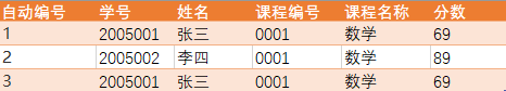 delete tablenamewhere 自动编号 not in(select min( 自动编号)from tablenamegroup by 学号,姓名,课程编号,课程名称,分数)