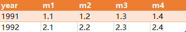 select year,(select amount from aaa m where month=1 and m.year=aaa.year) as m1,(select amount from aaa m where month=2 and m.year=aaa.year) as m2,(select amount from aaa m where month=3 and m.year=aaa.year) as m3,(select amount from aaa m where month=4 and m.year=aaa.year) as m4from aaa group by year