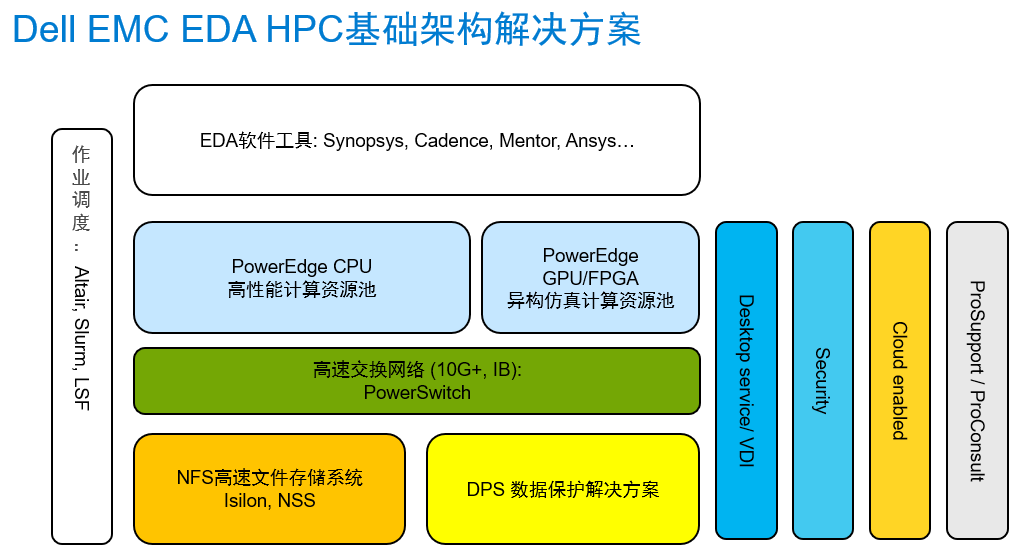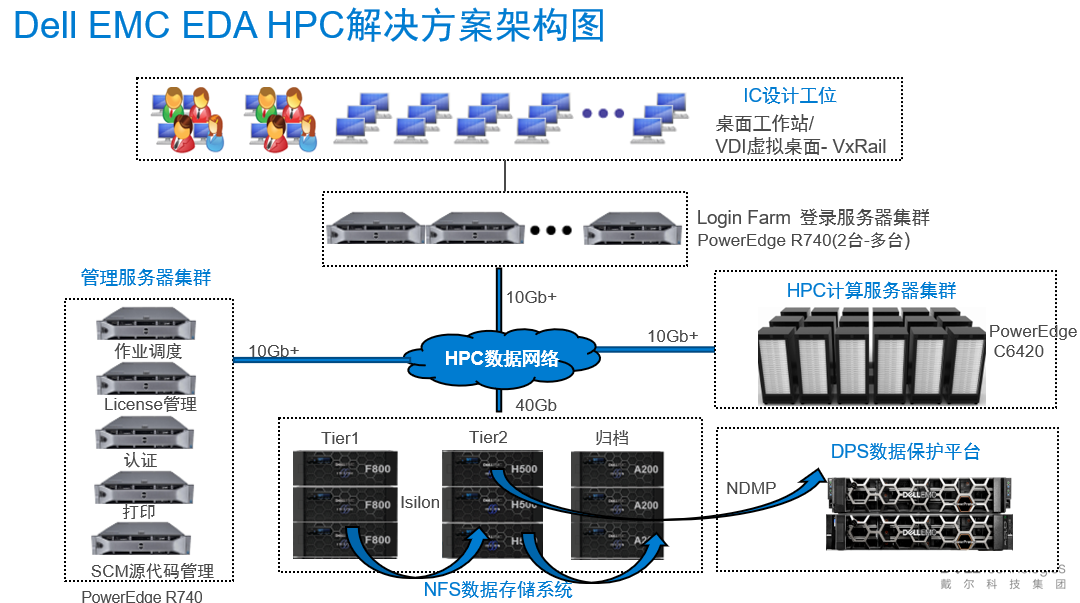 在这方面,戴尔易安信提供了端到端的EDA HPC解决方案,包括CPU/GPU/FPGA计算、高性能NFS文件存储系统、高速交换网络、数据保护、HPC集群构建与作业调度在内的整体解决方案交付,可实现一体化构建EDA基础架构。