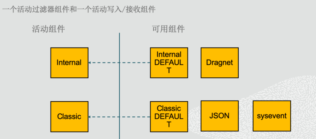 组件架构:包括写入和过滤两大类,从可用组件中选取适用部分激活使用。