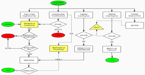 本地事务消息表的优势在于方案的通用性,无需提供回查方法,进一步减少的业务的侵入。在某些场景下,还可以进一步利用注解等形式进行解耦,有可能实现无业务代码侵入式的实现。我们上面说了本地事务消息表的基本理论,那么如果要设计一个高可用的企业级本地事务消息表方案,就要考虑更多的事情,在性能上做更大的优化,降低更多的重复投递率。以下是一个企业级事务消息的设计流程图: