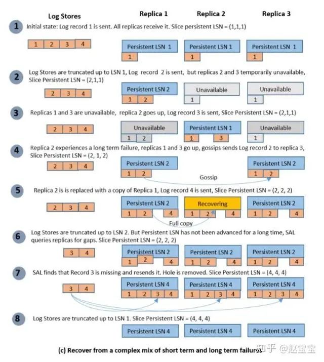 Page Store的故障恢复比较复杂,论文中讲了Page Store故障恢复的四种场景。