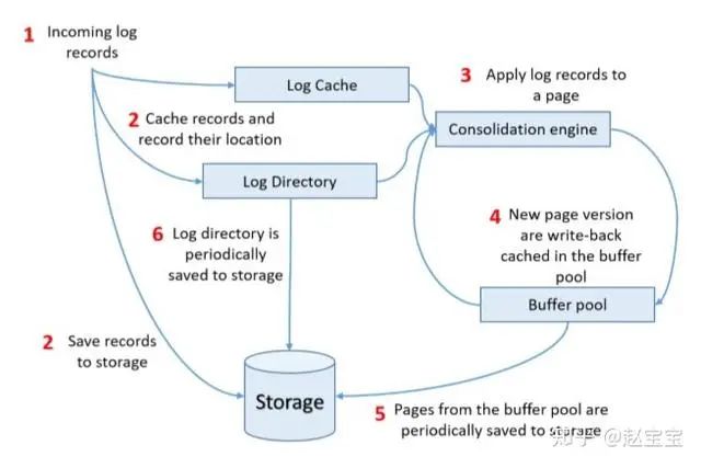 其中关键一个数据结构是Log Directory,是一个无锁hash表,key是page ID,value是相应page的一系列log的存储位置、各版本page的存储位置。该数据结构会被周期性的持久化。Page Store的工作流程如下图所示,细节此处不再赘述: