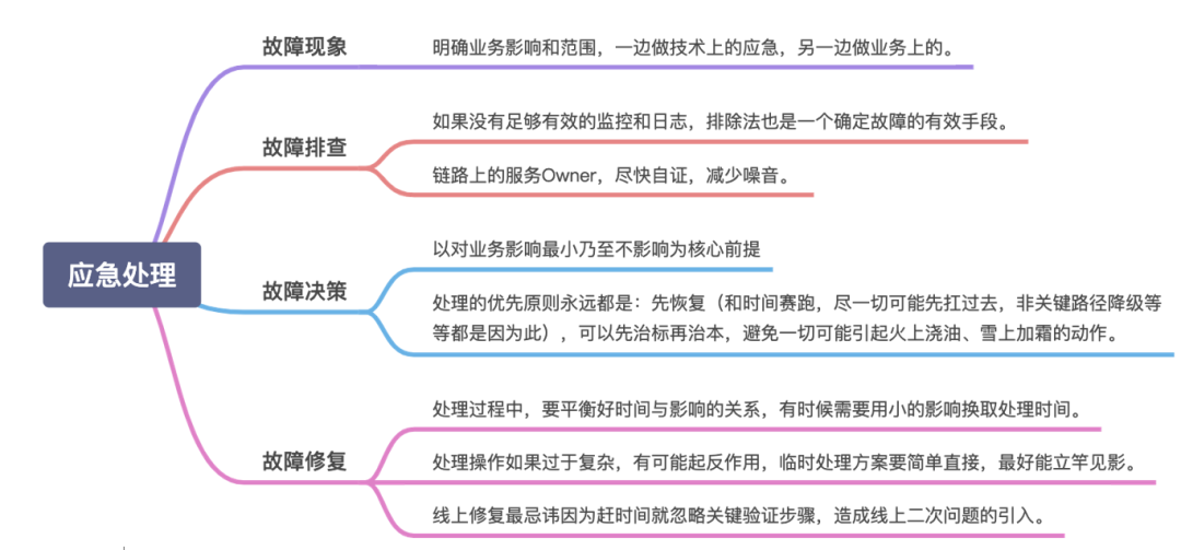 稳定性是一个先有意识再有能力的事儿。记得在 2015 年年初,张雪峰加入饿了么担任 CTO 之后,从他嘴里最常听到的一句话就是“研发要对生产环境有敬畏”。2014 年下半年,各方人马开始杀入外卖市场,饿了么启动百城计划进行业务扩张,短时间内从 10+ 城市覆盖到 100+ 城市,日订单量也很快从 10 万上涨到 100 万。业务井喷的同时,技术还没有做好足够的准备。我印象中,2014 年下半年几乎每天中午交易量都有新高,但同时也伴随着系统宕机、限流扩容、紧急调优、客服爆线、技术加班熬夜的问题。我曾在新乡的客服中心看到有的客服同学突然崩溃,耳机直接摔下来离开工位,因为每天会接收到大量用户的来电责问。就在那一刻,你才会清晰且直观的感受到:你在编辑器的每一行代码,你在服务器的每一次发布,会对现实世界很多活生生的人有直接的影响,你会突然意识到你的工作比你之前以为的要重要且有意义。所谓研发要对生产环境有敬畏,就是你知道你的作品会对别人产生不好的影响,你会为不好的结果感到惭愧与内疚,这就产生了敬畏。应急处理有一个基本原则:“以业务影响最小为主,优先恢复为核心目的,不要纠结手段和根因。”