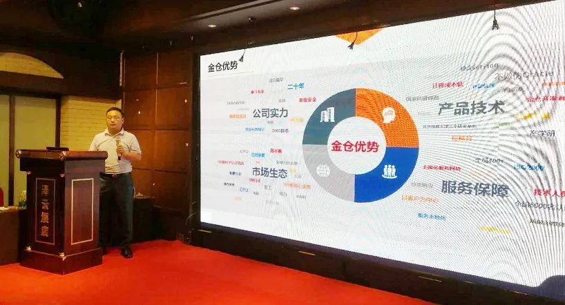 人大金仓代表从“公司实力、产品技术、市场生态、服务保障”四个方面进行内容分享。