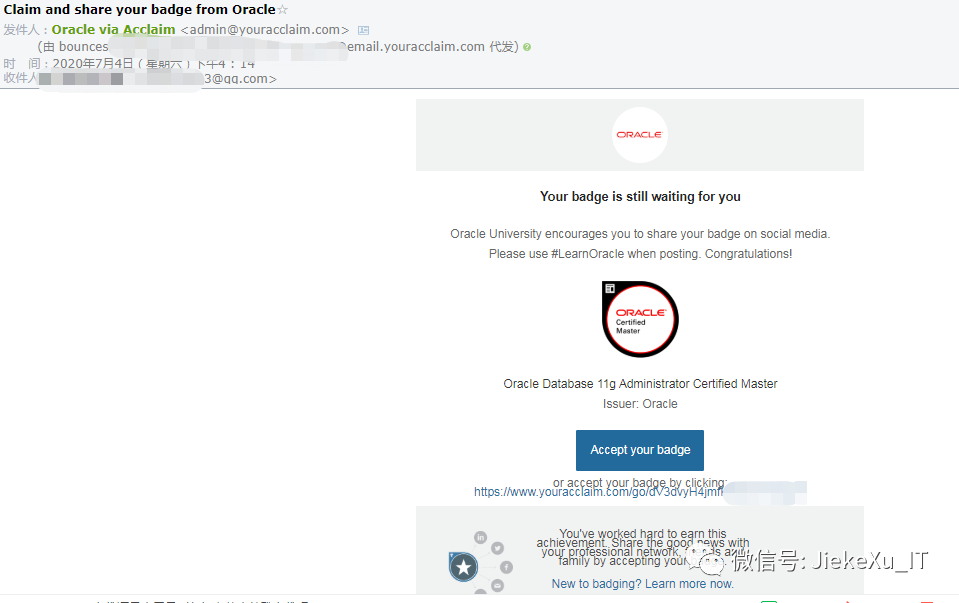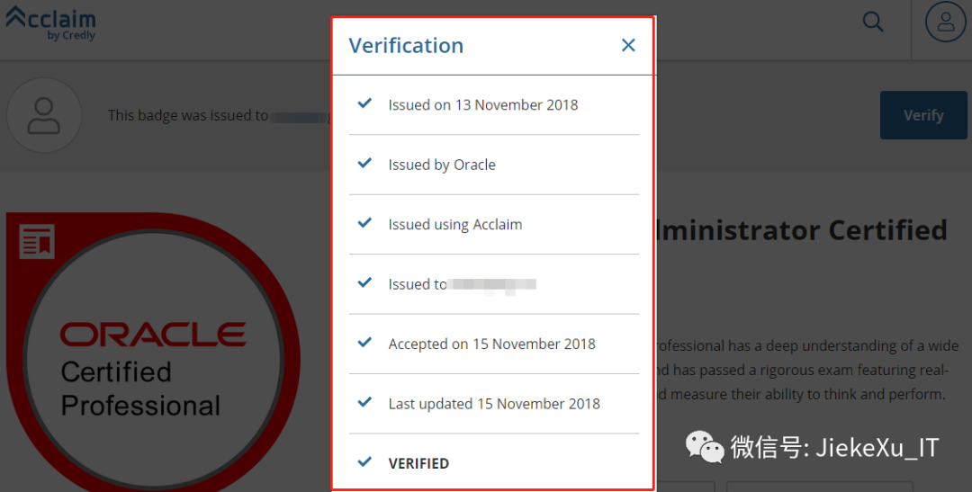 大家好,我是 JiekeXu,很高兴又和大家见面了,今天分享下 Oracle 认证证书真伪辨别方法。本文首发于微信公众号【JiekeXu之路】,欢迎点击上方蓝字关注我吧!