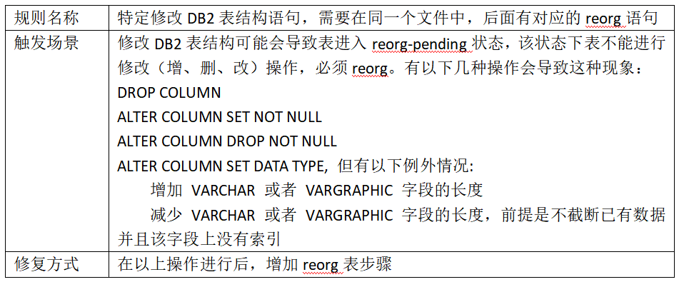 针对每个审核规则,都需要有相应的说明信息,以DB2其中一个规则举例说明: