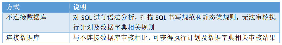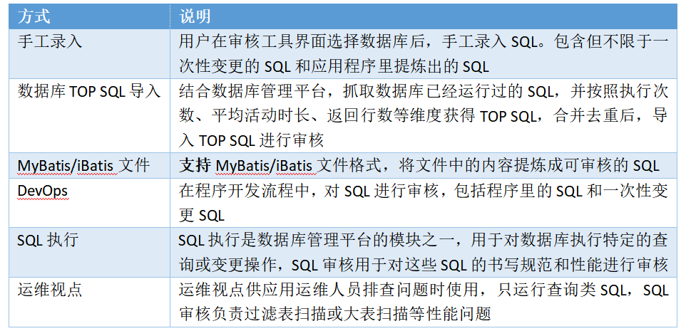 通过以上几个部分的说明,SQL审核的要点就介绍完了,接下来描述审核工具所具备的功能。