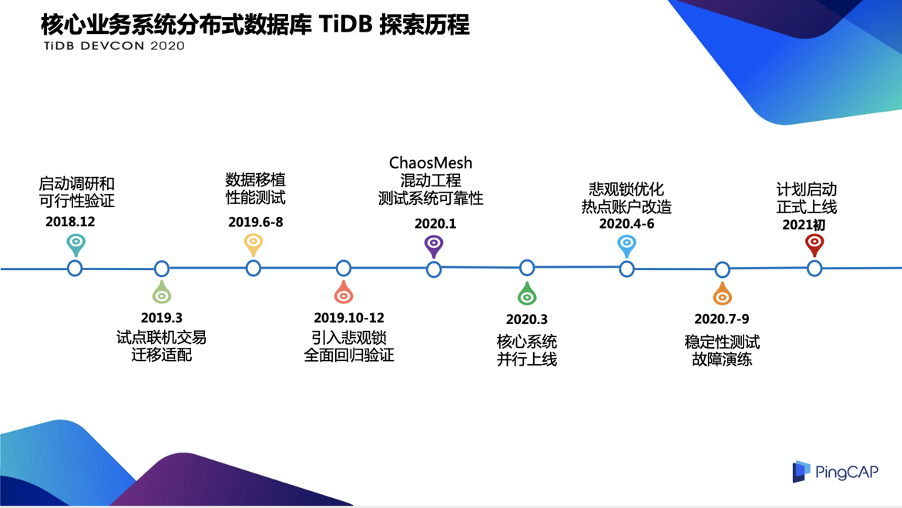 - 最难的是第三部分,锁机制的适配,因为 TiDB 当时版本只有乐观锁,我们在转帐场景中有热点账户,这个场景我们成功率只有 90% 不到,而且它的 TPS 是个位数,当时我们决定要采用悲观锁的模式实现。