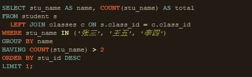 在这里会有一个奇怪的现象,MySQL执行顺序GROUP BY -> HAVING -> SELECT,从顺序看SELECL在GROUP BY之后,GROUP BY 应该不可以使用SELECT字段别名,但是在GROUP BY却可以使用SELECT字段别名,主要原因MySQL扩展了标准SQL,允许GROUP BY子句使用的SELECT子句中的别名以及和非列表表达式等标准, 并认为语句是有效的。从MySQL 5.7.5开始,默认SQL mode模式包括 ONLY_FULL_GROUP_BY。(在5.7.5之前,MySQL不检测功能依赖性,ONLY_FULL_GROUP_BY默认情况下不启用。