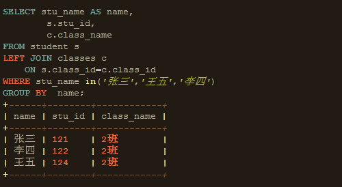 我们会先准备一些数据,即创建 classes、student 表,并插入测试数据, SQL语句如下: