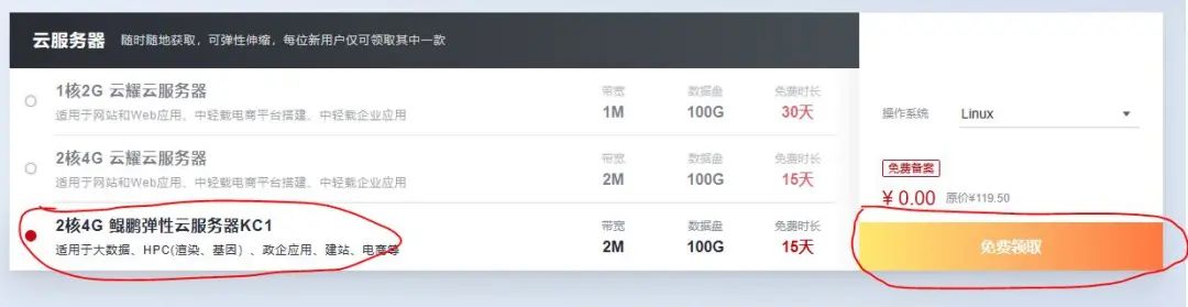 1.进入华为云鲲鹏服务器免费界面,点击下面的链接进入