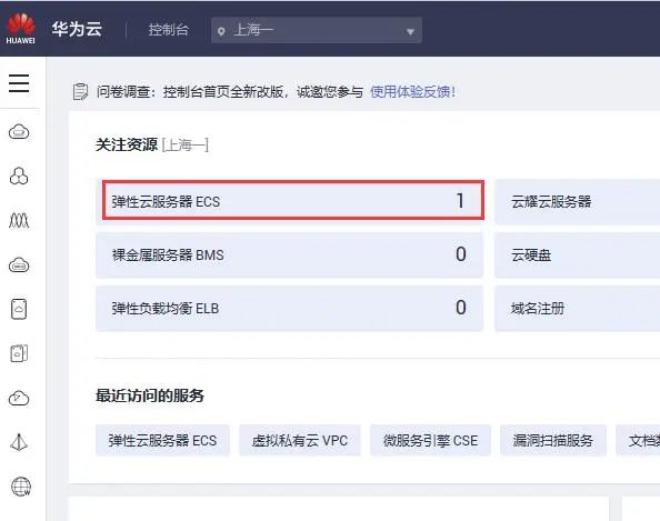 如果没有弹性云服务器也不要担心,生成服务器需要一定的时间,过一会就有了。
