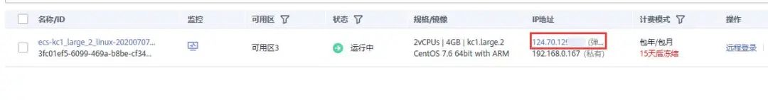 浏览器输入你鲲鹏服务器的外网地址,外网地址在这里找:
