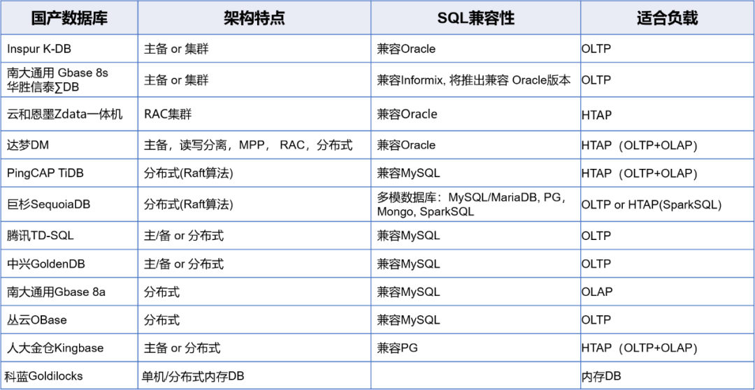 目前,浪潮商用机器和流行国产数据库厂商兼容列表