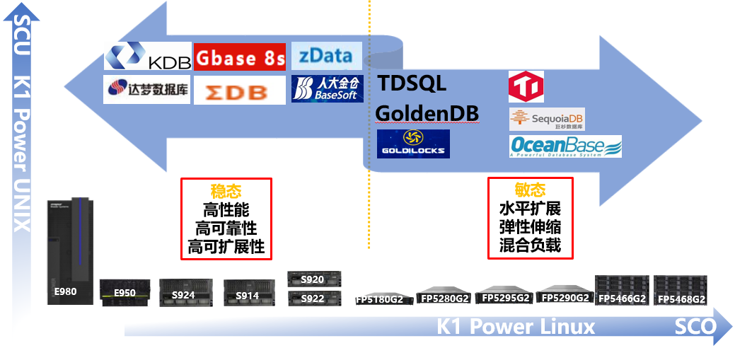 在新基建的大背景下,数据是生产力的核心要素之一。企业需要实时的从海量数据中获得有效的洞察,从而做出正确的决策,以助力快速发展目的。IT建设如何适配“新基建”的节奏,构建一个安全、稳定、高效的IT基础架构平台,变得尤为重要。众所周知,纵向扩展的IT架构承载着企业核心业务,K1 Power是客户核心业务的最佳支撑平台,尤其在银行核心数据库方面优势明显,业界领先。那么,K1 Power对开源数据库和国产数据库支持情况如何,有什么亮点而言呢?就像抛开一致性就不是有效的数据一样,上述五种架构都是基于高可用、高性能考虑的。实际上,相比于经典的商用数据库,开源数据库在性能及扩展能力方面均不落下风。K1 Power支持所有主流的关系型数据库、Key-Vaule数据库、内存数据库、GPU数据库、文档数据库、图数据库,拥有着良好的数据库生态。无论是低并发应用,高并发或高成长应用,还是超高并发的应用,K1 Power凭借高内存带宽、线程、L3缓存、IO带宽等性能优势,能够帮助客户大幅提高资源利用率,节省空间及电力等成本,从而获得更高的整体性能。根据测试数据,在低并发新业务多虚拟机场景下,与主流2路X86服务器相比,K1 Power Linux低配2路性能比X86高20%,K1 Power Linux高配2路性能则比X86高50%;在高并发物理整机测试场景下,低配2路K1 Power服务器性能优于2路X86服务器,而高配2路K1 Power Linux服务器性能与4路X86服务器性能接近。K1 Power Linux服务器曾帮助某大型互联网厂商在有着计算奥运会之称的Sort Benchmark全球排序竞赛中,以98.8秒完成100TB数据排序,获得4项第一。目前,K1 Power Linux服务器在其大数据平台混合集群中承载关键应用,保障集群实现高并发、高带宽,低延时和超强计算能力,在今年的科技抗疫中发挥了重要作用。相比主流X86平台,K1 Power服务器性能提升约三分之一,Spark应用SQL处理能力是X86的1.5倍,数据整体吞吐是X86的1.29倍,NXGZIP硬件加速大幅提高压缩性能,并释放出15% CPU处理能力,并且支持和X86进行大规模混合组网,从而使得整体TCO降低了20%。在某运营商的全球最大计费系统中,K1 Power Linux服务器作为最核心的部分,运行了其半数以上的关键容器,独特的大带宽保障了计费系统的高性能和低延迟,并且实现了弹性扩容缩容,简化了运维。SQL兼容性的好坏直接影响着数据库的开发和运维管理的便利性, 是客户在数据库选型时的关键考虑因素。K1 Power 全面支持国产数据库,无论是老牌国产数据库K-DB、达梦DM、南大通用Gbase、人大金仓Kingbase, 还是新兴的国产分布式数据库PingCAP TiDB、巨杉SequoiaDB、阿里OceanBase、腾讯TDSQL、中兴GoldenDB、丛云OBase、亚信AntDB、科蓝Goldilocks,以及云和恩墨Zdata等国产数据库一体化产品,均做了全面的对接和支持。