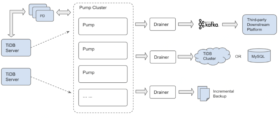 收集各个Pump中收集的Binlog进行归并。 将Binlog转行成SQL或者指定格式的数据。