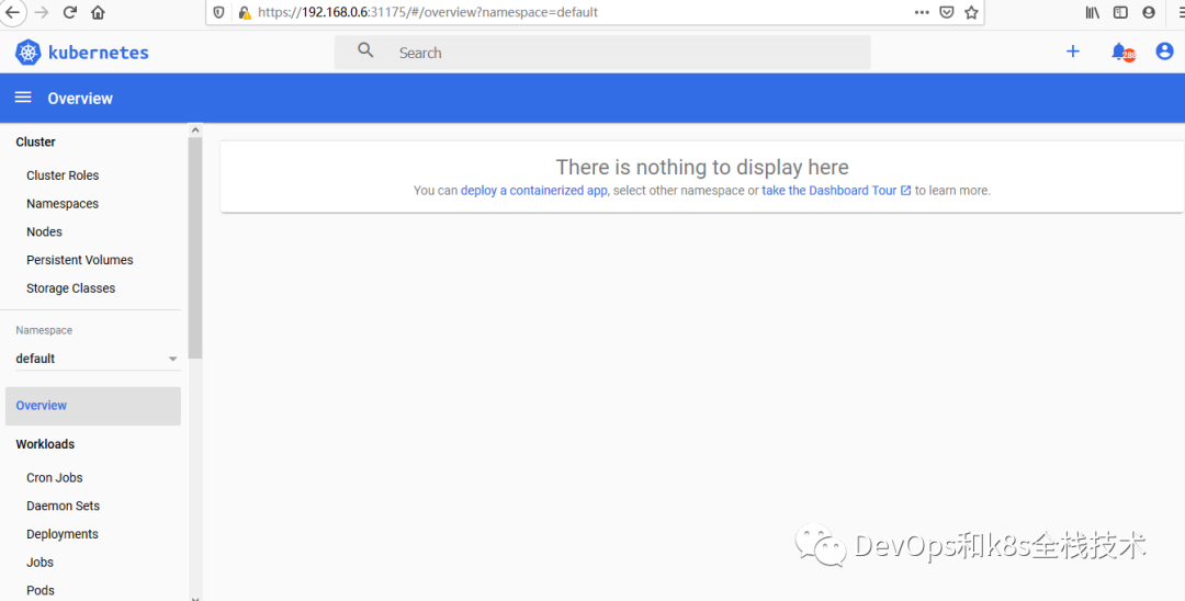 点击sing in登陆,显示如下,默认是只能看到default名称空间内容