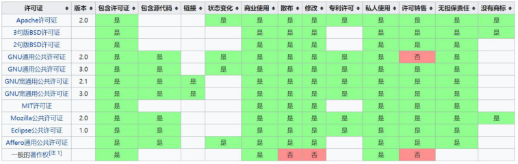 开源促进会(OSI,Open Source Initiative) 批准的许可证超过80种,其中被广泛使用的许可证包括以下8种:① Apache License 2.0 (Apache-2.0)② 3-clause BSD license (BSD-3-Clause) 三句版BSD③ 2-clause BSD license (BSD-2-Clause) 两句版BSD④ GNU General Public License (GPL) / GNU通用公共许可证⑤ GNU Lesser General Public License (LGPL) GNU次通用公共许可证⑦ Mozilla Public License 2.0 (MPL-2.0)⑧ Eclipse Public License version 2.0 (EPL-2.0)根据使用条件的不同,开源许可证分为两大类,即 Permissive许可证(宽松式许可证)和 Copyleft许可证(反版权许可证)。① 允许用户不经许可可以随意复制、修改和发布,但是并不要求分发时必须使用相同的许可证,用户可以在修改代码后选择闭源。② 常见的Apache、BSD、MIT属于此类宽松式许可证① Copyright(版权) 的意思是未经许可,用户无权复制和使用。② Copyleft License(反版权许可证) 作为Copyright的反义词,意为未经许可,用户也可以随意复制、修改和发布,但要求分发者必须使用相同的许可证发布修改后的衍生作品,以保证衍生作品也能被其他人自由使用,常见的AGPL, GPL, LGPL, MPL属于Copyleft许可证。PostgreSQL许可属于宽松式许可证,用户可以随意分发,类似MIT或者BSD,但以更自由的方式进行。MySQL 的 GPL属于反版权许可证,要求分发者必须使用相同的许可证发布修改后的衍生作品以下图示说明了不同许可协议的主要约束、宽松度的差异: