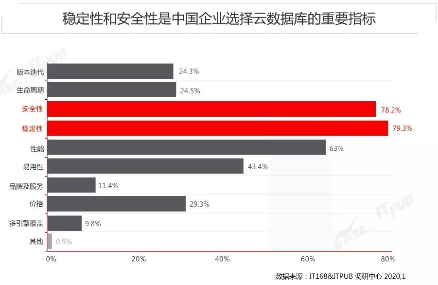 3. 稳定性和安全性是中国企业选择云数据库的重要指标;