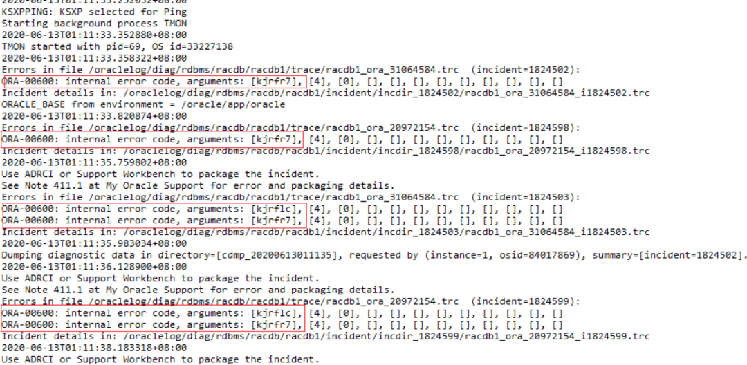 后面陆续接到其他兄弟的反馈,每个人手上的部分库一个节点打完补丁,起实例后DB ALERT日志也都报一大堆ORA-600。
