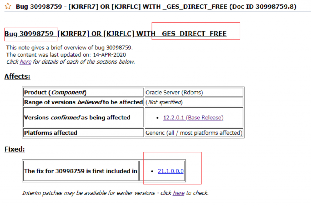 该BUG在21.1.0.0 fixed。。。。。。看看有没有Workaround,哇哈,人品大爆发,还真有: