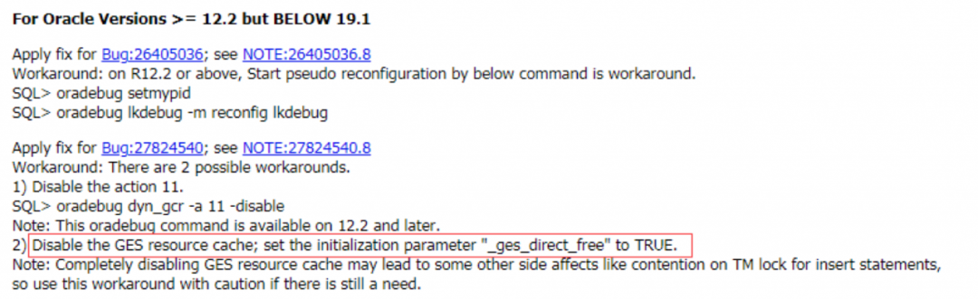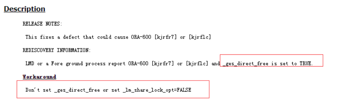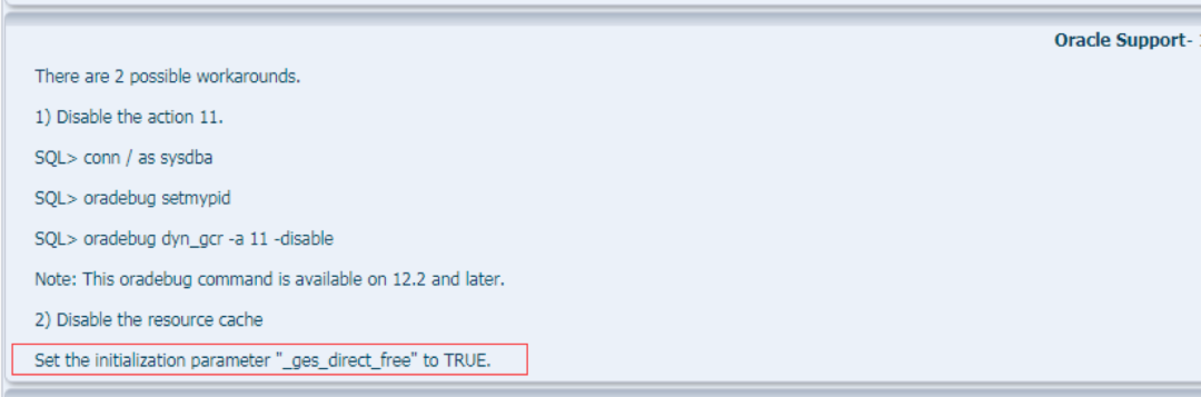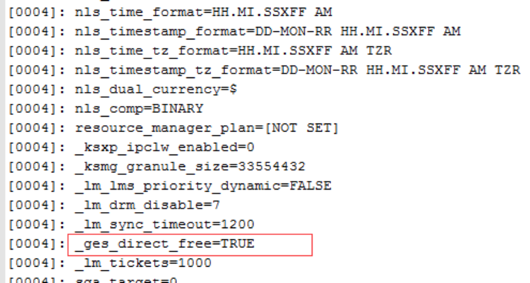 根据BUG特征描述只有在_ges_direct_free设置成true时才可能触发该BUG,后面我们通过查看数据库参数及trace日志证实确是触发该BUG。