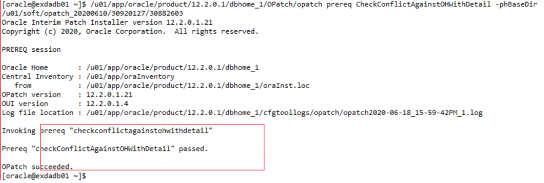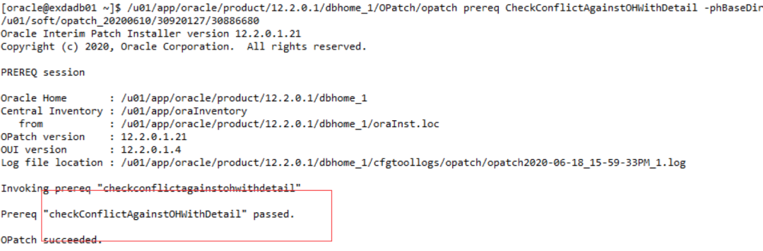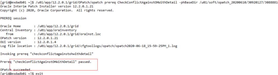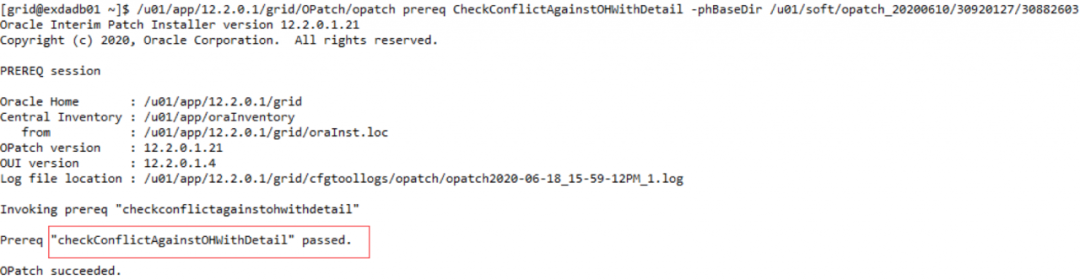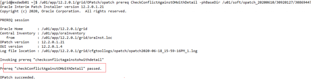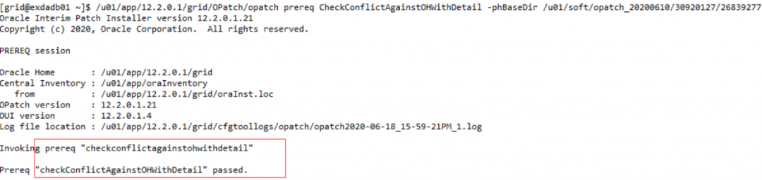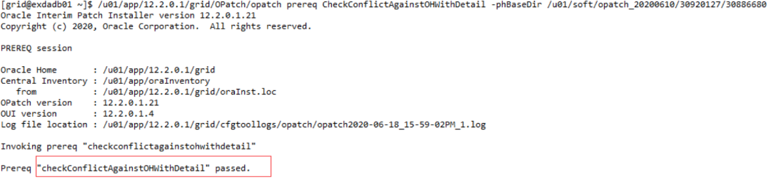 二、顺藤摸瓜,是不是DB HOME补丁冲突了?接下来我们对GI HOME及DB HOME都做了补丁冲突分析,确认均正常。GI HOME补丁冲突分析截图: