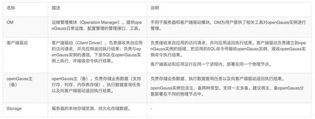 openGauss主要包含了openGauss服务器,客户端驱动,OM等模块。
