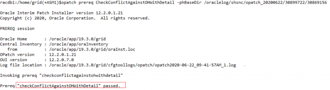 opatch prereq CheckConflictAgainstOHWithDetail -phBaseDir oraclelog/pa/opatch_20200622/30899722/30898856